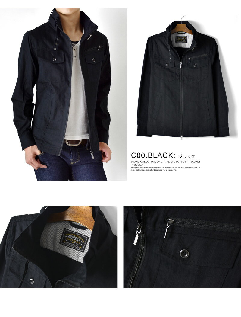 ドビーストライプ☆背裏ミリタリー半袖シャツジャケット【P4D】【送料無料】【ゆうパケット】【メンズ】