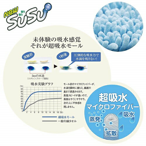 商品の特長 〜SUSU〜〇マイクロファイバーバスマット、「SUSU〜吸う吸う」に新機能!抗菌プラスで清潔度を更にアップしました。